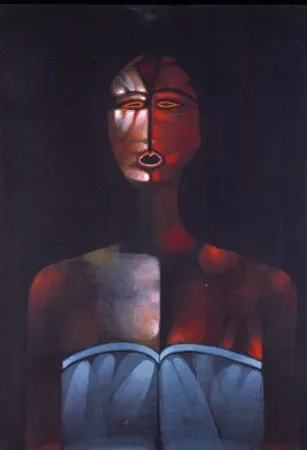 Obraz ten jest jedną z wybitniejszych prac z cyklu „czarnych aktów”, malowanych w drugiej połowie lat 70. Artysta chętnie stosował w nich ujęcia w półpostaci, en face, z silną stylizacją twarzy. Wszystkie te cechy reprezentuje oferowany obraz.