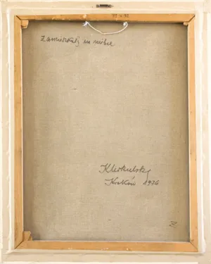 sygn. na odwrocie na płótnie: Zamieszkały na niebie | KMikulski | Kraków 1976