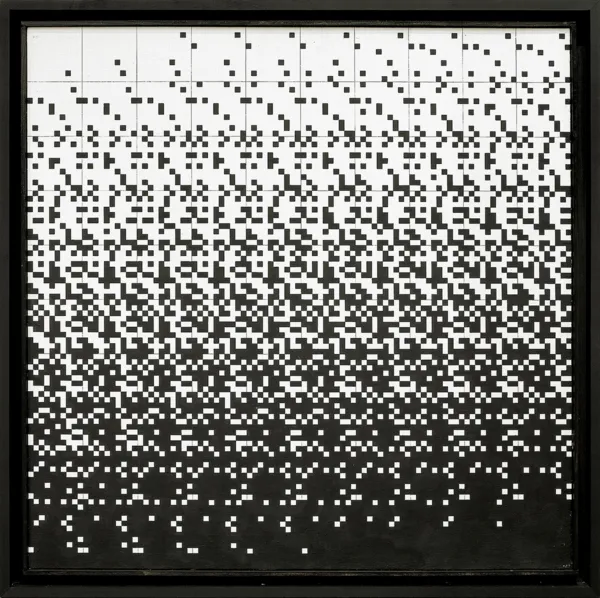 Podstawowym elementem mógł być jedynie kwadrat – tylko te figury geometryczne w pełni wyłączają się wzajemnie. Nie mają takich własności ani trójkąty ani koła – pozostawiające nieoznaczoną powierzchnię. A ja chciałem mieć powierzchnię obrazu opanowaną do końca i zbudować go przy użyciu zaledwie dwóch znaków. Z podobnych względów wybrałem czerń i biel – bardzo rzadko ośmielałem się stosować inny kolor. I nikt mi nie zadawał pytania, której czerni czy bieli, używam...
