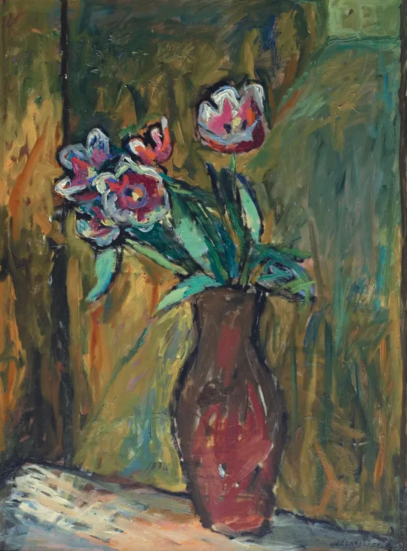 Patrząc na obrazy Józefa Czapskiego odnosi się wrażenie, że ten wybitny humanista, który traktował malarstwo nadzwyczaj poważnie, każdy temat uznawał za godny przedstawienia na płótnie. W jego malarstwie kolor stanowi problem nadrzędny od czasów, gdy związał się z kapistami, a temat obrazów był właściwie nieograniczony. Podglądał życie ulicy, sceny w paryskim metrze, samotnych ludzi siedzących w kawiarniach. Była nim też niedbale rzucona na stół serweta, zwykły fotel czy prosty wazon z kwiatami. Martwe natury ułożone z najprostszych przedmiotów nabierały jakby innego znaczenia. Dekoracyjny obraz Tulipany z roku 1956, czyli z okresu, kiedy to ponownie Czapski wrócił do regularnego malowania, świadczy o trwającej latami fascynacji artysty kolorem, którym operuje śmiało i pewnie.