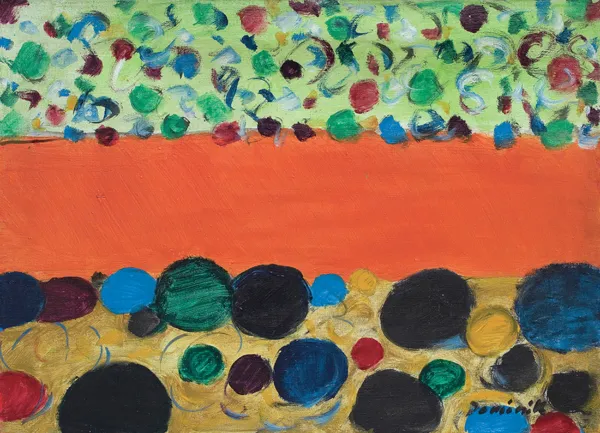 Motyw ogrodu, rzeczywisty, pojawia się we wczesnych rysunkach, jest też obecny w obrazach z połowy lat 50. Jednak nie ma w owym motywie tej funkcji metaforycznej, która z czasem zespoli w sobie wątki pejzażowe, symbolikę arkadyjską i swoistą „ludowość“, w całości jednoznacznie rozpoznawalną jako malarstwo Dominika. Analogi...