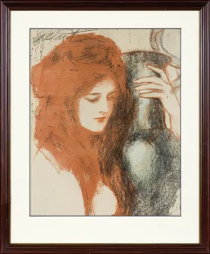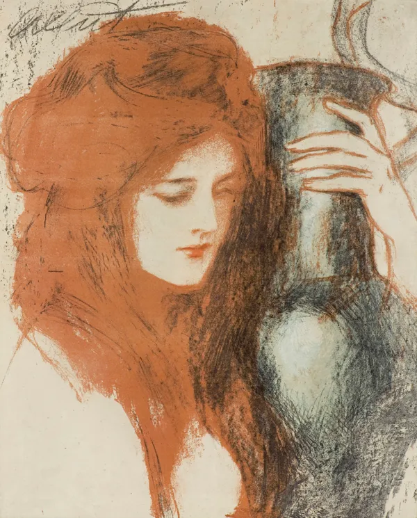 Teodor Axentowicz – począwszy od roku 1903 – kilkakrotnie powracał do motywu dziewczyny z wazonem. Opracowywał go zarówno w wyrafinowanych kolorystycznie obrazach malowanych pastelem, jak i w różnych technikach graficznych – w czarno-białej algrafii, fluoroforcie oraz w nowej, własnej technice barwnego glinorytu. Bowiem „zainteresowanie Axentowicza grafiką było szczególne /.../ interesował go jedynie eksperymen...