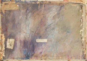 – nalepka wystawowa TZSP (druk, zatarty tekst rękopiśmienny, stempel): No 4109 Autor... Tytuł... Rodzaj dzieła ... | Cena 2200 zł Własność K... | data rok ...