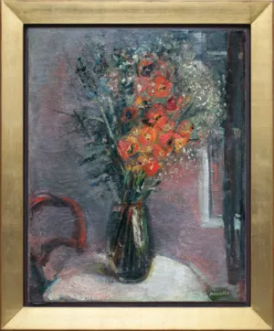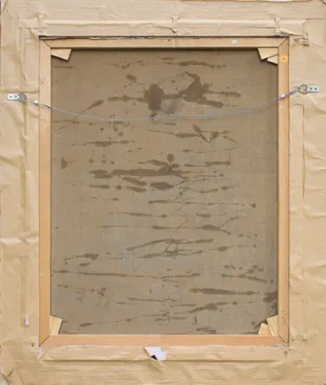 na odwrocie na krośnie napis „A“; nadto mała okrągła nalepka z napisem A