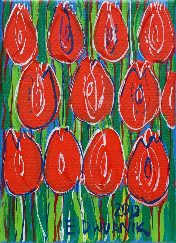 na odwr. na płótnie: 2018 | E. DWURNIK | "CZERWONE TULIPANY" | NR : XXIII [w ramce] -1535 | -7465