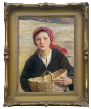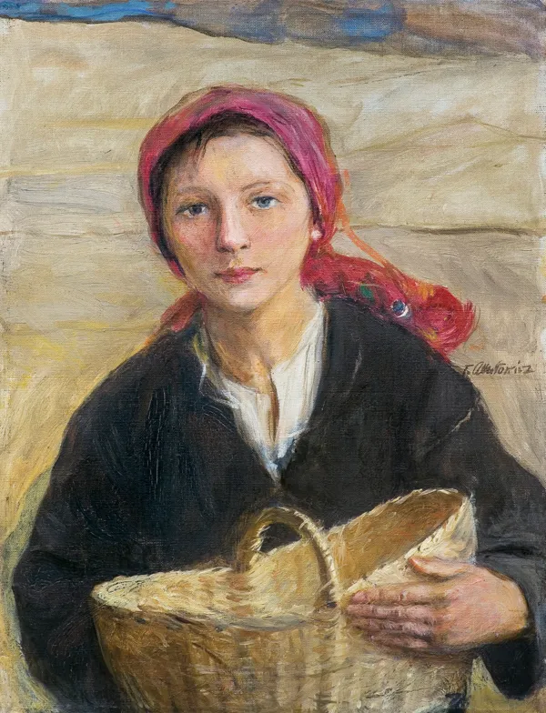 Teodor Axentowicz był jednym z pierwszych polskich artystów malujących, tak później popularne, obrazy z Huculszczyzny. Po tematy huculskie sięgał przez wszystkie lata swej twórczości, powtarzając je w różnych wariantach i układach kompozycyjnych, malowanych olejno, akwarelą bądź pastelami. Jednym z takich ulubionych motywów były przedstawienia młodych huculskich dziewcząt, malowanych najczęściej – jak i w naszym obrazie – na tle śnieżnego, zimowego krajobrazu.