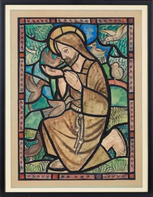 akwarela, tempera, papier żeberkowany naklejony na karton, 69 x 49 cm