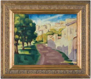 Na krośnie nalepka wystawy w Towarzystwie Zachęty Sztuk Pięknych w Warszawie (druk, tusz): 16271 Autor Lam Władysław 16271 | Tytuł Cagnes | Uliczka II Rodzaj dzieła ol | Cena 159 Własność – Data nadesłania 192.