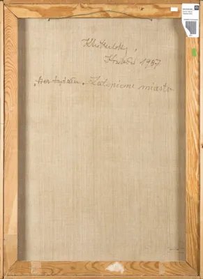 sygn. na odwr. na płótnie: KMikulski | Kraków 1987 | „Bez tytułu“ [przekreślone] | Zatopione miasto