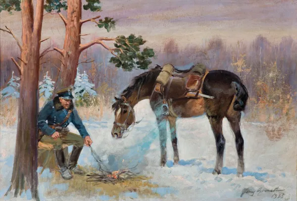 UŁAN Z KONIEM PRZY OGNISKU, 1933