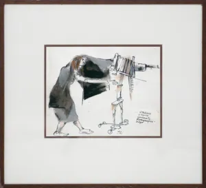 Lech Stangret w swoich publikacjach określił rysunek tytułułem Właściwa obsługa wynalazku Pana Daguerre’a, inaczej niż w tece z rysunkami oraz reprodukcjach – fotografiach J. Stokłosy – towarzyszących tekstowi dramatu (wydanie z 1984 roku), gdzie nazwano go: Wdowa po miejscowym fotografie firmy «Ricordo» – ponury agent śmierci.