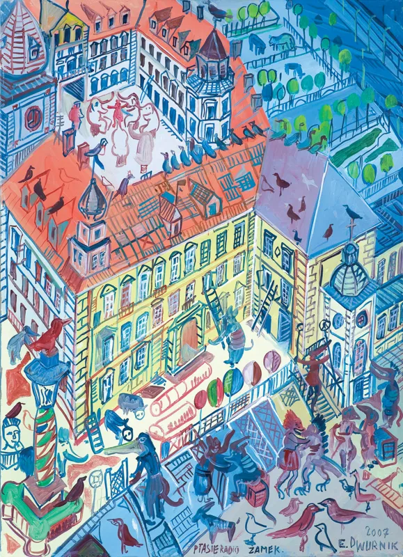 sygn. na odwr. na płótnie: 2007 | E. DWURNIK | „ZAMEK | – Ptasie radio“ | NR: XI [w kółku] – 435 – 3739