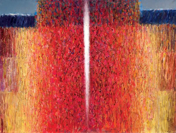 sygn. na odwr. na pł. l.g.: Ryszard Lis | [adres artysty] | Białowieża II 130 x 97 – olej | 1983