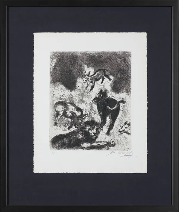 Prace z cyklu ilustracji do Bajek Jeana de La Fontaine’a, zamówionych przez Ambroise Vollarda, wykonanych przez Chagalla w latach 1928-1931 (cykl liczył 100 ilustracji). Była to w twórczości artysta druga tak liczna seria ilustracji, po cyklu do „Martwych dusz” Mikołaja Gogola z lat 20., wykonanych w większości w technice suchej igły. W serii do Bajek Chagall znacznie wzbogacił i udoskonalił swój warsztat graficz...