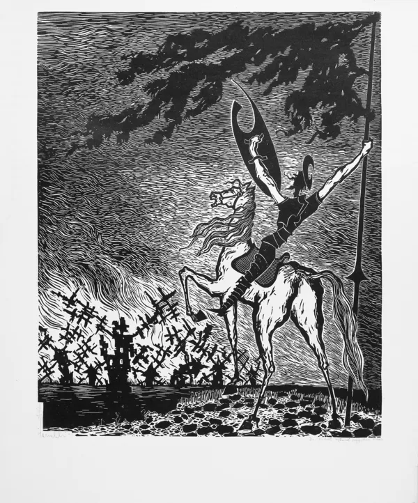 Praca pochodzi z cyklu „Don Kichot” tworzonego przez artystę od 1942. Większość prac z tego cyklu powstała w latach 60. XX w.