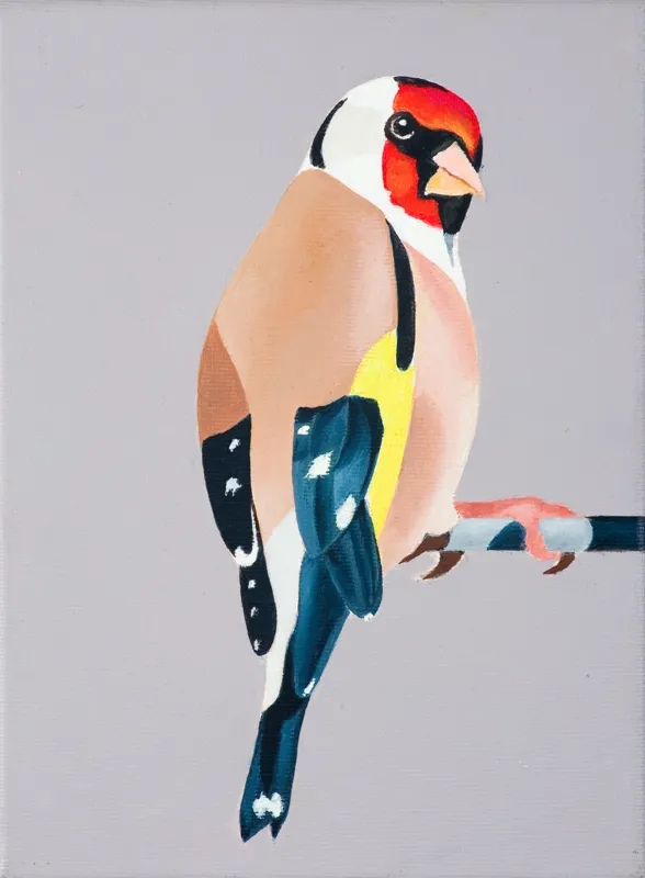 sygn. na odwr. na płótnie: ANTONI-JANUSZ | WOJNAROWSKI | SZCZYGIEŁ | OLEJ/PŁÓT. | 24 x 18 CM. | 2018 r, niżej p.: monogram wiązany z datą: AJW 2018.