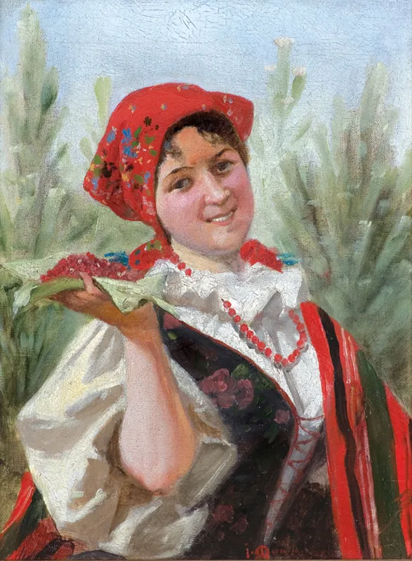 na odwrocie naklejka z napisem tuszem: [...]inka wieśniaczka (z Podola)