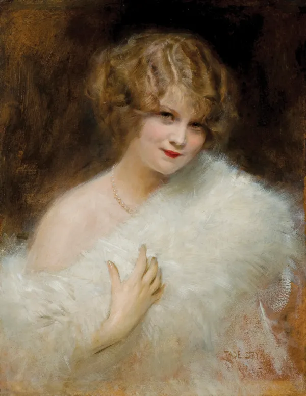 Tadeusz Styka był przede wszystkim portrecistą, malarzem arystokracji, pięknych kobiet i sławnych osób. Z takim własnie portretm pięknej, młodej kobiety mamy tu do czynienia. Obraz ukazuje blond piękność, która kusi widza zalotnym spojrzeniem i swą domniemaną nagością skrytą pod delikatnym białym futrem.