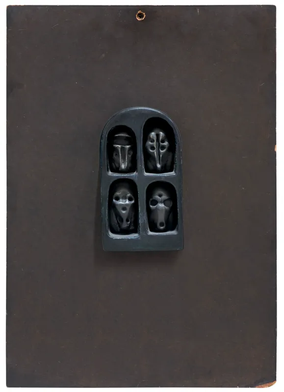 W zbiorach muzealnych znajduje się także kilka metalowych reliefów korespondujących kompozycyjnie z równocześnie wykonywanymi w latach 60. rysunkami. Prace te przedstawiają ukazane w układzie en face uproszczone twarze, których elementy składowe – oczy, usta i nos, podlegają zwielokrotnieniu.