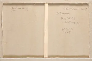 sygn. na odwrocie na płótnie p.g.: NORMAN 2017 | STAN [przekreślone] | RODZAJ | NASTROJU | MOOD | TYPE; l.g.: (PHOTON HELP | GIFT)