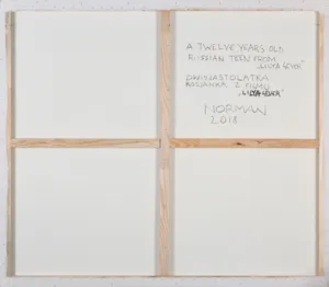 sygn. na odwr. na płótnie p.g.: A TWELVE YEARS OLD | RUSSIAN TEEN FROM | “LILYA 4EVER“ | DWUNASTOLATKA | ROSJANKA Z FILMU | “LILYA 4EVER“ | NORMAN | 2018