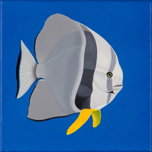 sygn. na odwr. na płótnie: ANTONI-JANUSZ |WOJNAROWSKI | RYBA | OLEJ/PŁÓTNO | 30 x 30 CM. | 2019 r. AJW [monogram wiązany] | 2019.