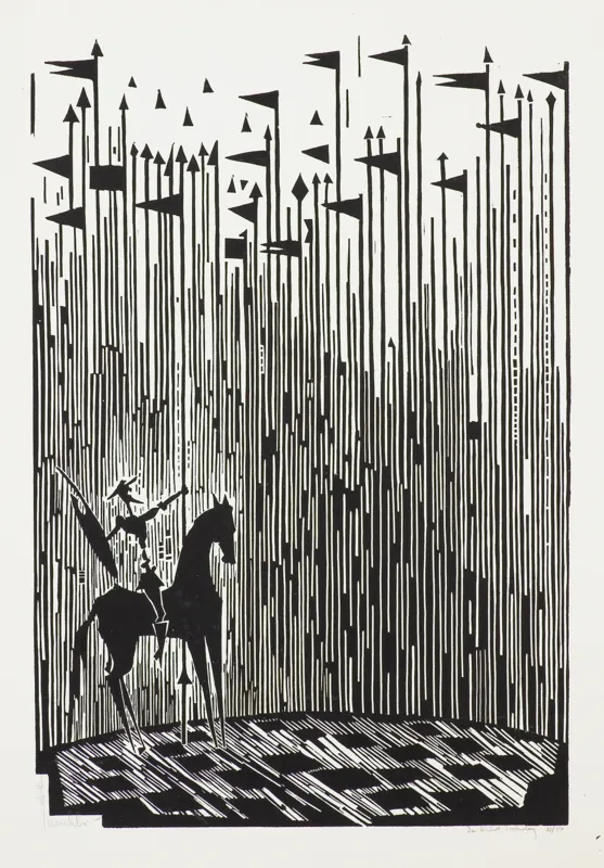 sygn. oł. pod ryc. l.: S. Rassalski, p.: Don Kichot i sztandary 22/50