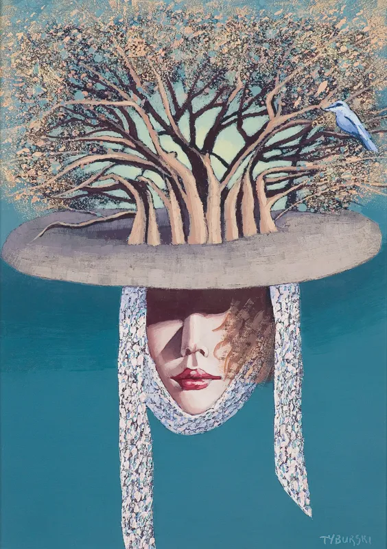 sygn. na odwr. na płótnie: "NIEBIESKI PTAK" | OLEJ, 70 x 50 cm, 2019 | "BLUE BIRD" | JERZY TYBURSKI