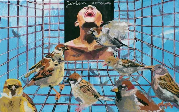 sygn. na odwr. p.g.: Katarzyna Kukuła I "Siedź cicho" I olej na płótnie I 50 x 80 cm I 2019