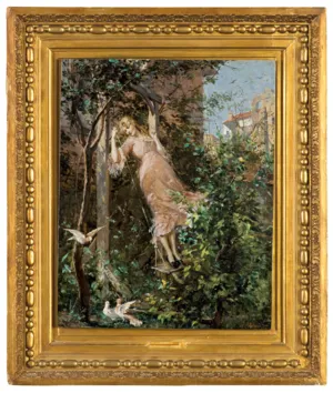 olej, deska mahoniowa - 46 cm x 36.7 cm