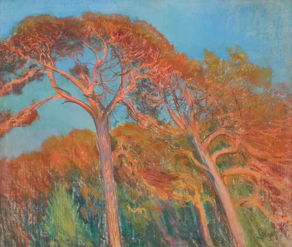 Zafascynowany krajobrazem, przyrodą i światłem malował pejzaże nadmorskie i wysokie, oświetlone mocnym słońcem sosny rosnące na piaszczystych brzegach. Motyw ten wyraźnie urzekł artystę, który powtórzył go wielokrotnie w całej serii obrazów olejnych, w pastelach, rysunkach, a także w grafice.