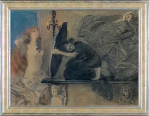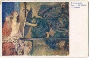 Obraz o charakterze i wymowie symbolicznej, podejmujący – częsty w malarstwie Axentowicza – wątek przemijania, młodości i starości. Jest to wstępna wersja kompozycji znanej p.t. Noc, reprodukowanej, m.in. na barwnej pocztówce z 1919 roku.