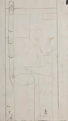 na odwrocie szkic wnętrza z postacią i piecykiem, oł.