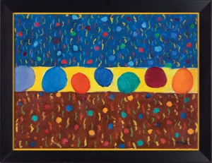 sygn. na odwr. na płotnie l.g.: DOMINIK 2000 | OL, PŁ. 73 x 100 | PEJZAŻ