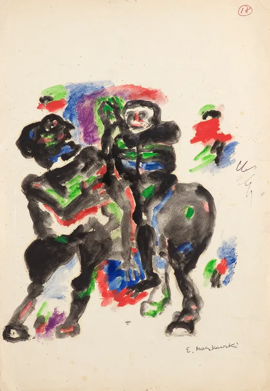 sygn. dłg. p.d.: E. Markowski, napis czerwonym dłg. p.g.: 18 [w kółku]