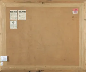 na odwr. na płycie l.g. dwie autorskie nalepki z danymi obrazu w języku polskim i angielskim;
