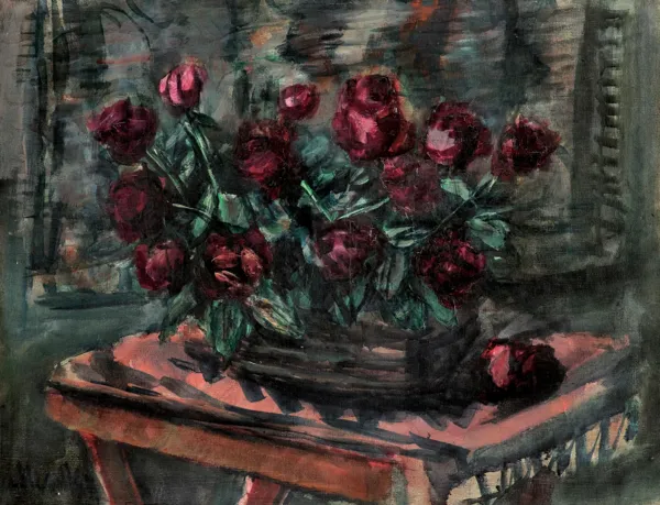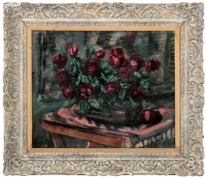 – obok karteczka przypięta pinezkami (druk, długopis): Boundry Gallery | Artist: SIGMUND MENKES | (ZYGMUNT) 1896-1986 | Titel: Les Roses rouges | Medium: oil on canvas | Date: c...