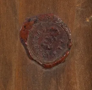 na prawej listwie ramy powtórzony numer (kredką): 612, poniżej pieczęć lakowa; na górnej listwie ramy numer (farbą): 190; na lewej listwie ramy nalepka z numerem 3945; ponadto słabo czytelne zapisy ołówkiem.
