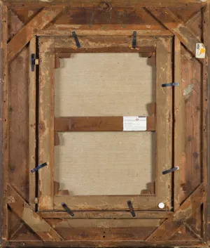 na odwrocie, na poprzeczce krosna numer (kredką): 612.; obok nalepka aukcyjna z opisem obrazu w j. niemieckim