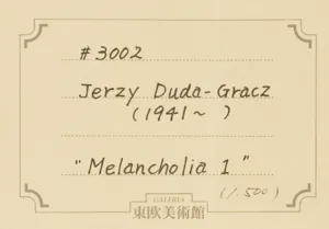 na odwr. nalepka galerii japońskiej (?) ręcznie wypełniona: #3002 | Jerzy Duda-Gracz | (1941~) | „Melancholia 1“ | (1.500)