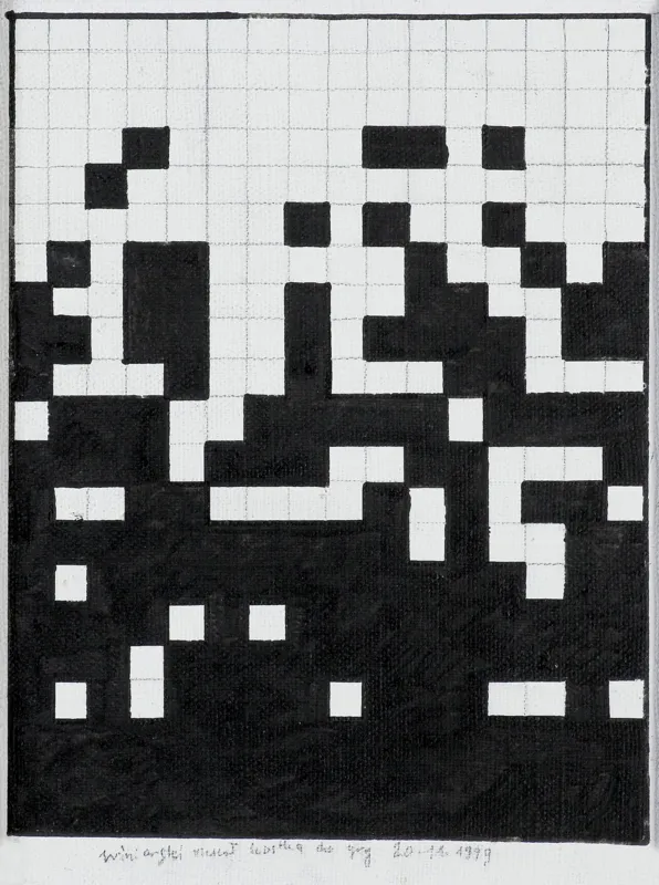 sygn. oł. pod kadrem kompozycji: winiarski rzucał kostką do gry 20.11.1999