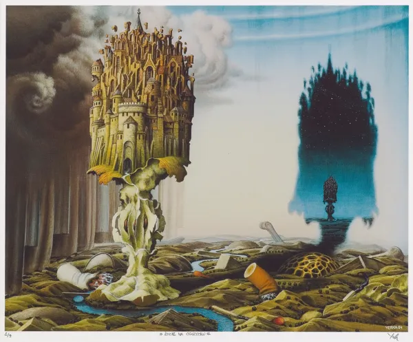 sygn. z matrycy p.d.: YERKA 94, sygn. oł. pod ryc. l.: 2/9, śr. >>ŻYCIE NA OGRYZKU<<, p.: Yerka