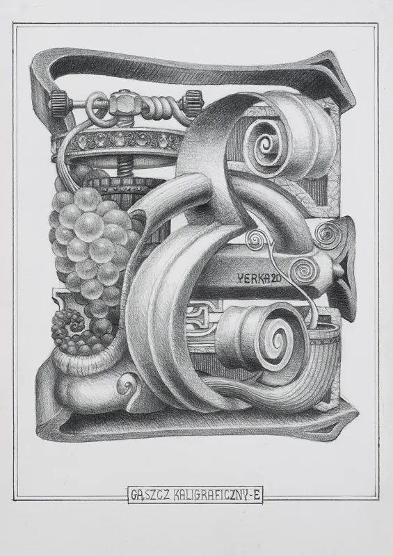 sygn. po środku kompozycji : YERKA 20, śr. d.: GĄSZCZ KALIGRAFICZNY-E [w ramce]