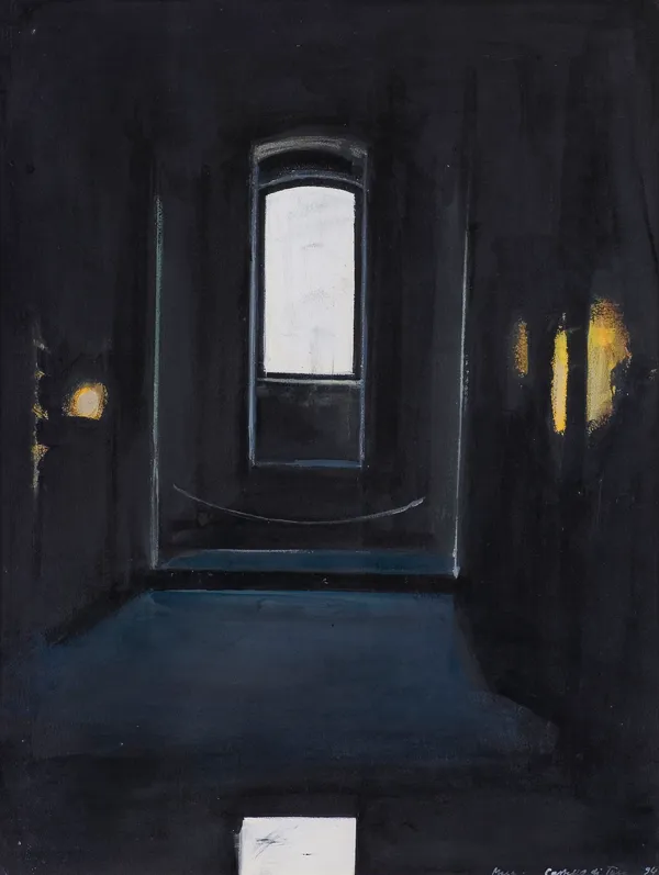 sygn. p.d.: Maria - Castello di Tusa 94, na odwr. l.d. dwie pieczątki: Maria T. Kuczynska | Sculptor, poniżej adres i telefon, p.d.: Maria T. Kuczyńska | "Castello di Tusa, Sicily" | 1994 - ink & pastels | 55 x 76 cm