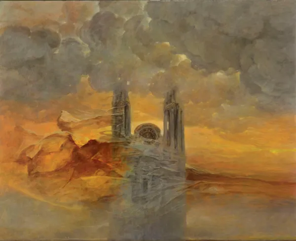 Motyw katedry - wyłaniającej się z mgły, płonącej, zrujnowanej - należał do jednego z ulubionych przez artystę i niezwykle cenionego przez publiczność. Duża część powstających na zamówienie w latach 80. “pejzaży metafizycznych” to różne - architektoniczne i kolorystyczne - wersje monumentalnego domu - świątyni. Łącznie z innymi elementami takimi jak krzyże, trumny, cmentarze i ukrzyżowane postaci, należały do kategorii obrazów o wyraźnie religijnych konotacjach.