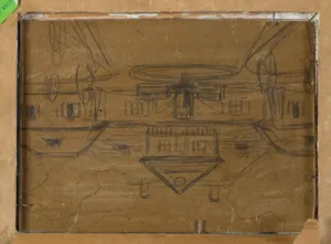 na odwrocie, przeciwnie do kompozycji, ołówkowy szkic dworku