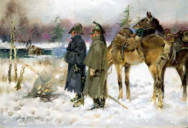 Żołnierze napoleońscy w odwrocie spod Moskwy