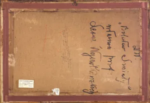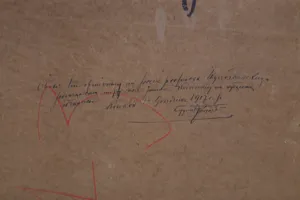 – poniżej ręką Zygmunta Kowalskiego (tuszem): Obraz ten ofiarowany mi przez profesora Wyczółkowskiego |