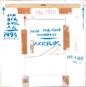 AKRYLIK, p.: 107 x 105 | cm., przy l. i p. krawędzi znak strzałki w górę, przy g. krawędzi napis: 186 MHD