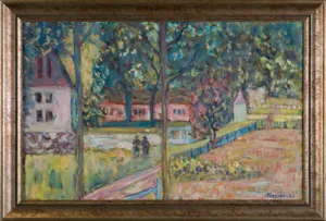 na odwrocie na płótnie nieczytelna pieczęć, na górnej listwie krosna pieczęć: 32 ANCO | [...] N.Y.
